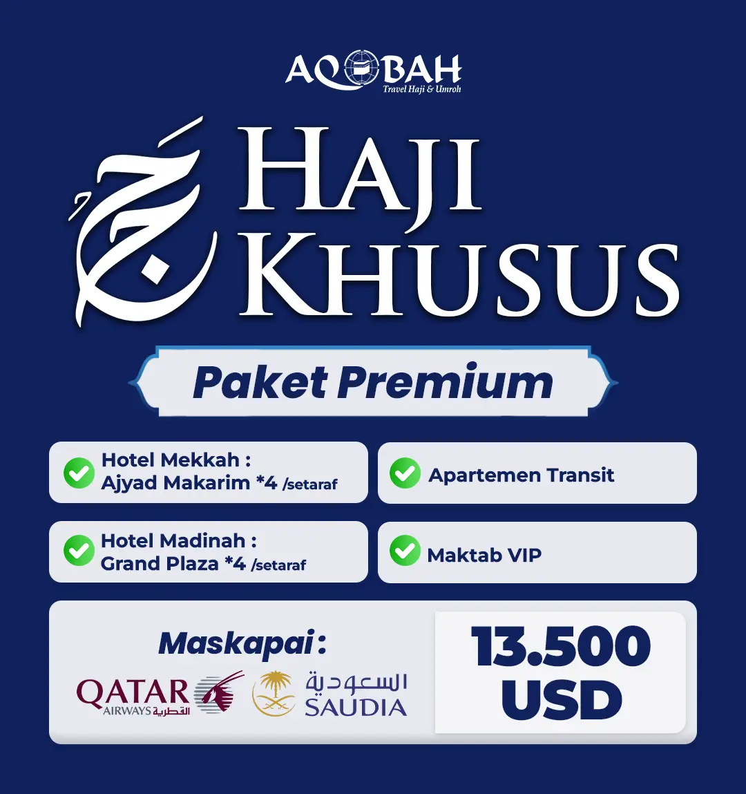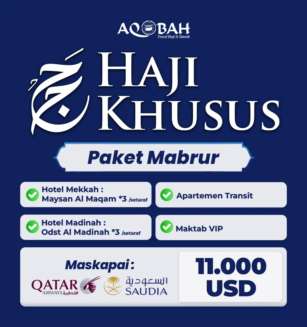 Haji khusus adalah paket perjalanan haji dengan visa resmi dari pemerintah Indonesia, yang memiliki waktu tunggu lebih cepat,yaitu 5-9 tahun dan lebih nyaman dibandingkan haji reguler. Kami menawarkan paket haji khusus dengan fasilitas terbaik untuk memenuhi kebutuhan dan kenyamanan. Temukan paketnya yang tepat untuk Anda!