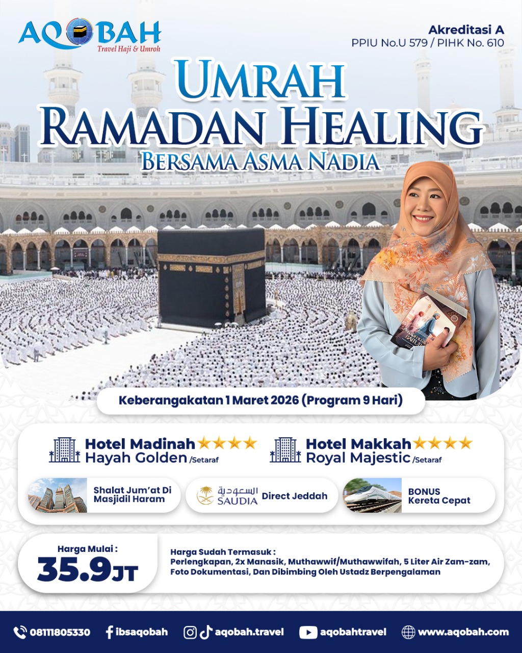 Bukan sekadar menunaikan rukun, tapi memperbaiki kualitas diri. Dapatkan bimbingan intensif, kajian eksklusif, dan momen spiritual tak terlupakan langsung bersama Asma Nadia. Umrah di bulan Ramadan Maret 2026.